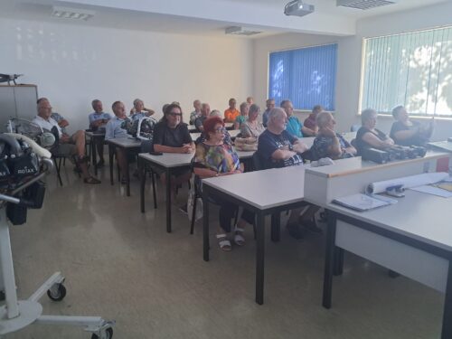 29 Mitglieder hatten sich angemeldet, mit nur ein paar weniger starteten wir um 17 Uhr zur Führung durch alle Hangars, die mit einem ausführlichen Vortrag von Andreas Grosch, Präsident des Fliegerclub "Weiße Möwe Wels" begann, der einen großen Bogen von der Gründung bis zu heute spannte. Etliche Nachfragen während seines Vortrages zeugten von großer Interesse.