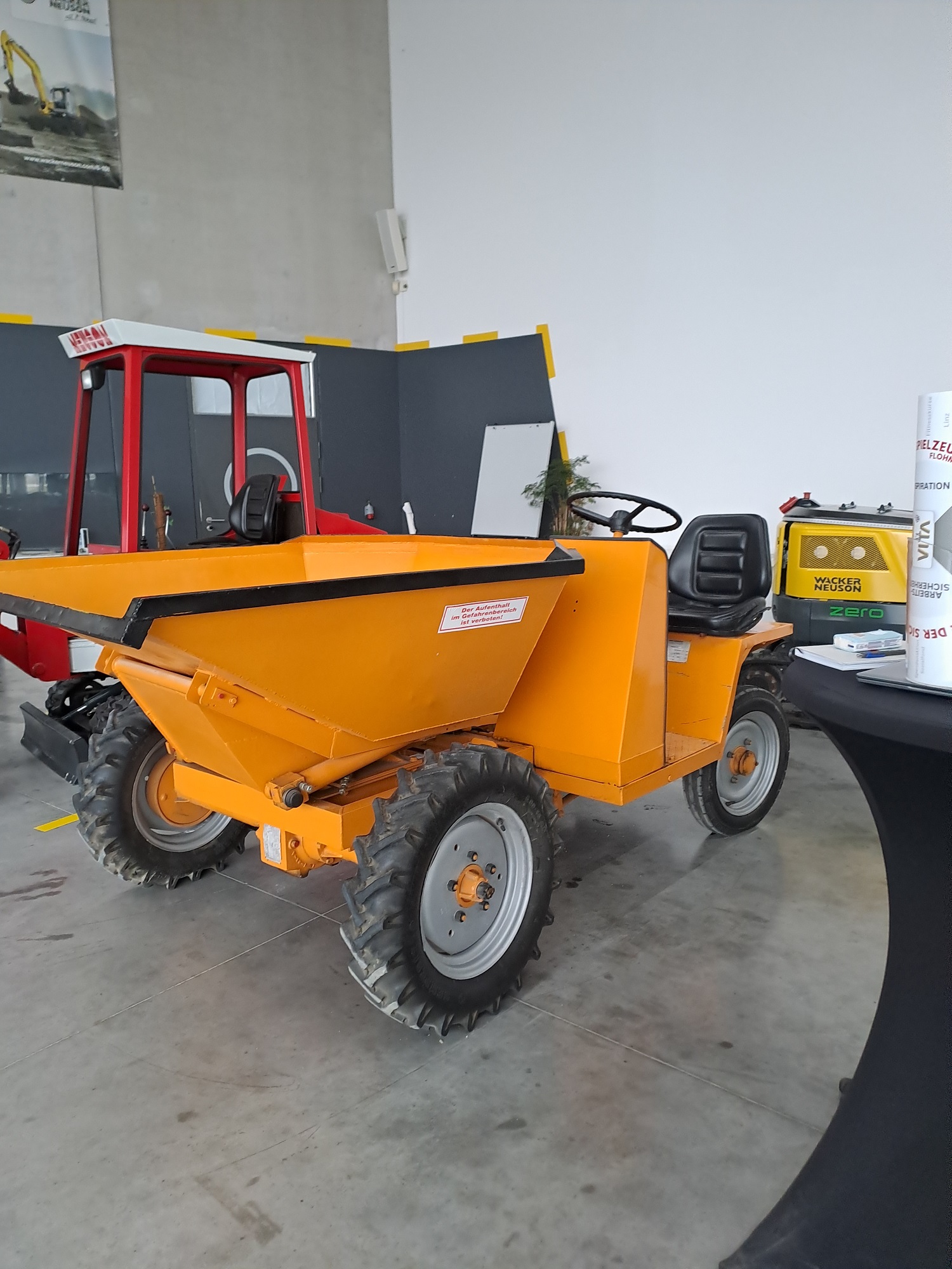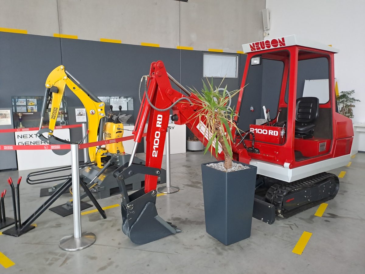 Das 1981 in OÖ gegründete und heute in Hörsching beheimatete Werk hat etwa 1000 Beschäftigte und trägt seinen Firmennamen durch die 2007 erfolgte Fusion zu Wacker Neuson. Wir besichtigen vormontierte Mobilbagger und eine Station, an der Motoren aus Deutschland, England und Japan eingebaut werden. An weiteren Stationen werden Hydraulik, Kabinen, Hub-Arme je nach Auftrag zusammengebaut.